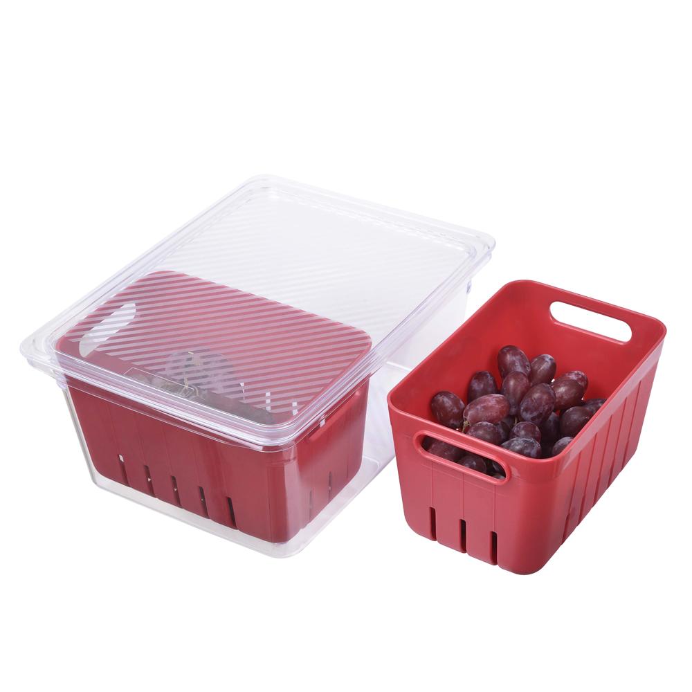 帶蓋帶瀝水籃冰箱儲物盒3件套