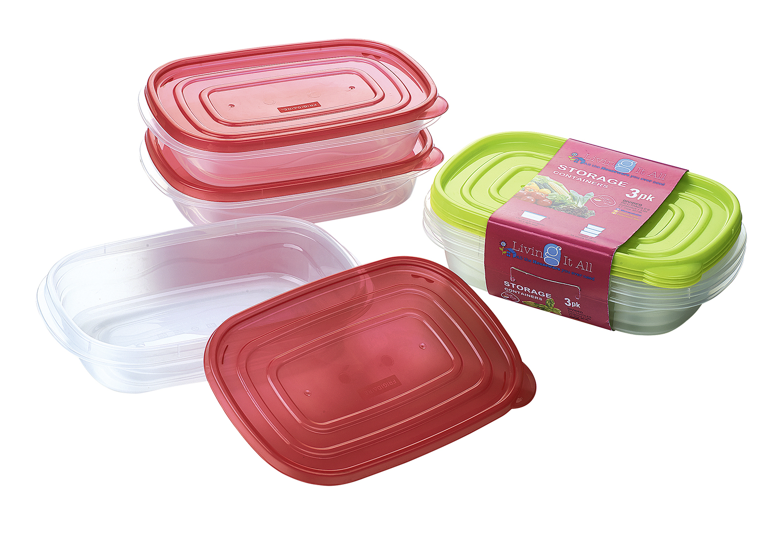 長方形薄壁分隔飯盒3個/套 950ML*3